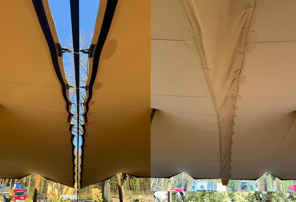 Uzupełnij instalację swojego namiotu rozciągliwego (i uczyn go wodoszczelnym) za pomocą rynny łączącej StretchTentFactory.