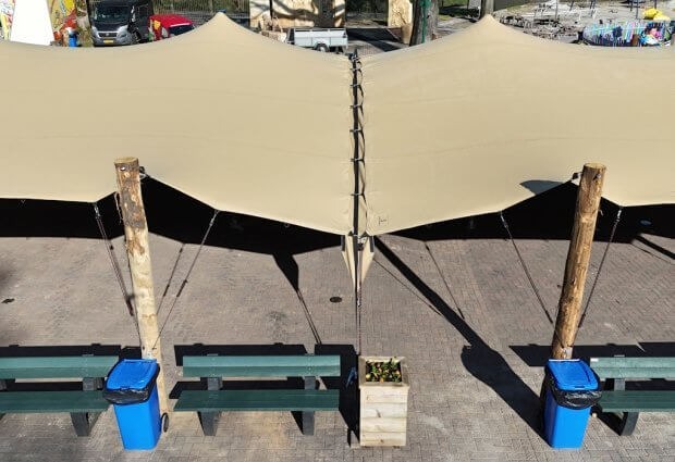 Dzięki rynnie łączącej StretchTentFactory możesz łatwo połączyć dwa namioty rozciągliwe, bez obaw o deszcz i przecieki. To inteligentne rozwiązanie tworzy całkowicie wodoszczelne przejście, dzięki czemu Twoje wydarzenie lub przestrzeń na świeżym powietrzu może odbywać się nawet w niesprzyjających warunkach pogodowych.