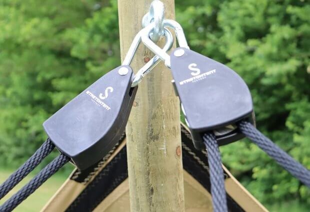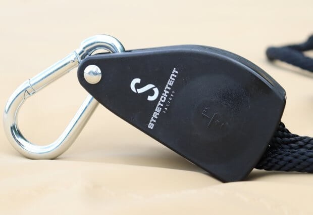 Napinacz Rope Ratchet (1/2″) zawiera dwa karabińczyki i 400 cm liny. Każdy z nich ma wytrzymałość na rozciąganie 250 kg. Krótko mówiąc, jest niezniszczalny.