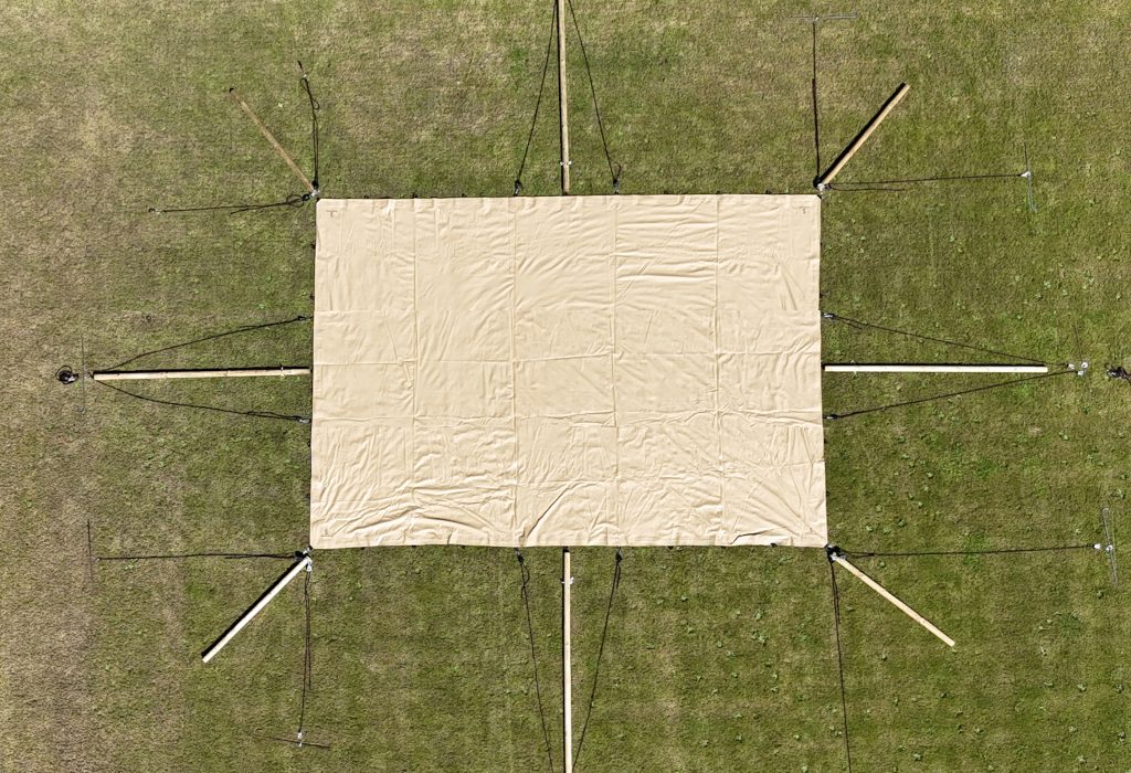 Con sus dimensiones relativamente compactas de 5,0 x 7,0 m, esta carpa elástica ofrece espacio para aproximadamente 50 personas.