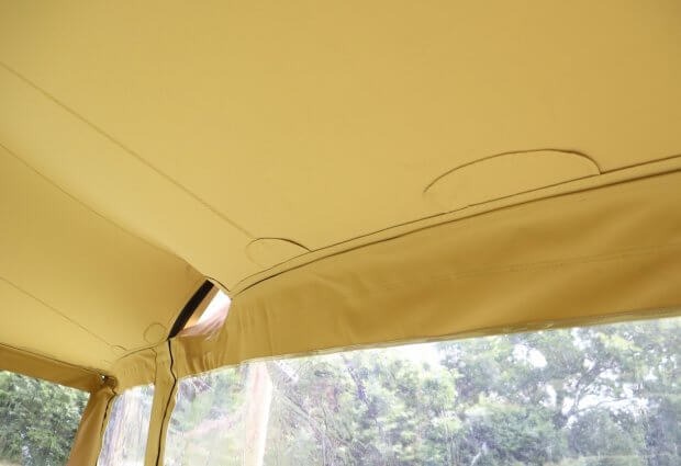 Las paredes laterales se fijan fácilmente con un cordón resistente y se ajustan a la perfección gracias a las resistentes correas de velcro que las sujetan a la tienda. Esto te permite crear un ambiente acogedor y protegido en un instante sin sacrificar el estilo de tu tienda elástica.